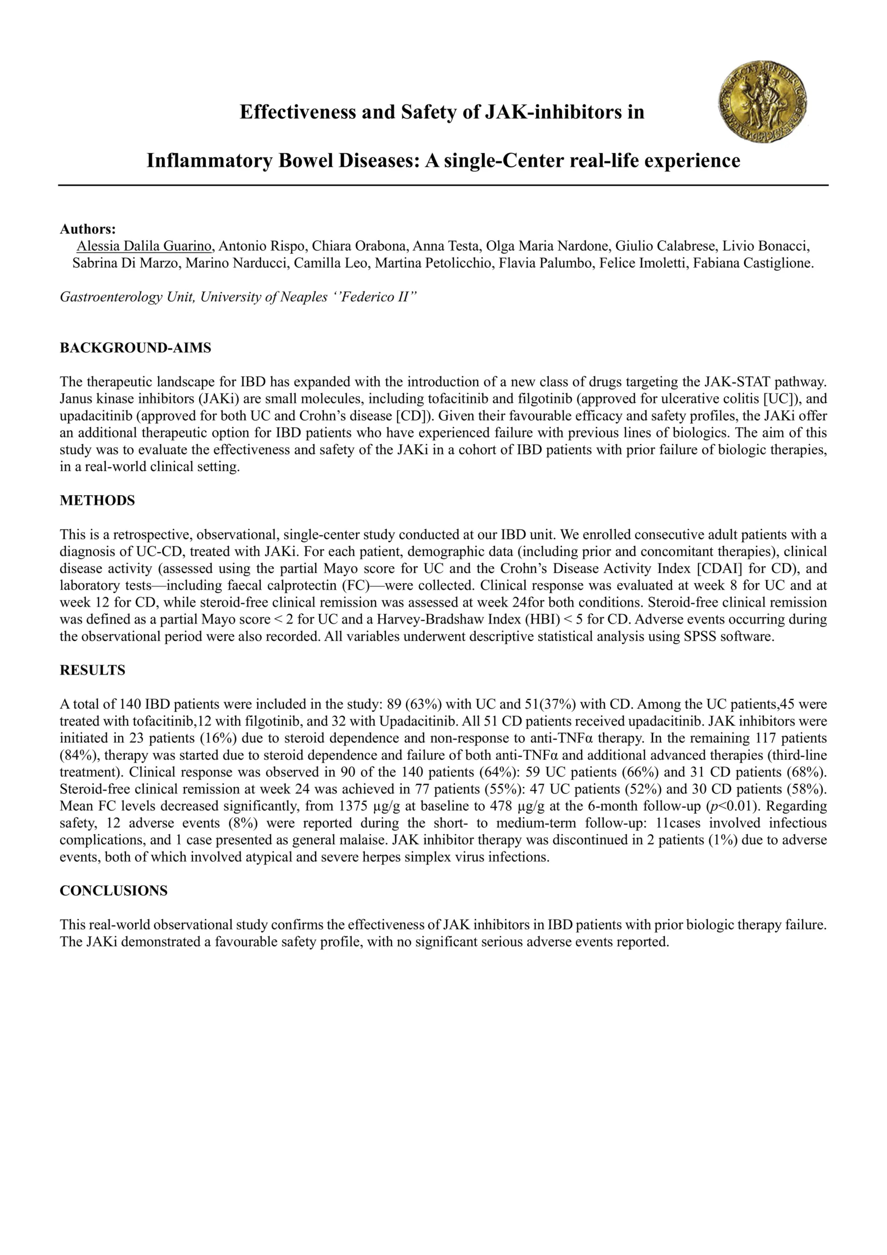 Effectiveness and Safety of JAK-inhibitors in inflammatory Bowel Diseases A single-Center real-life experience