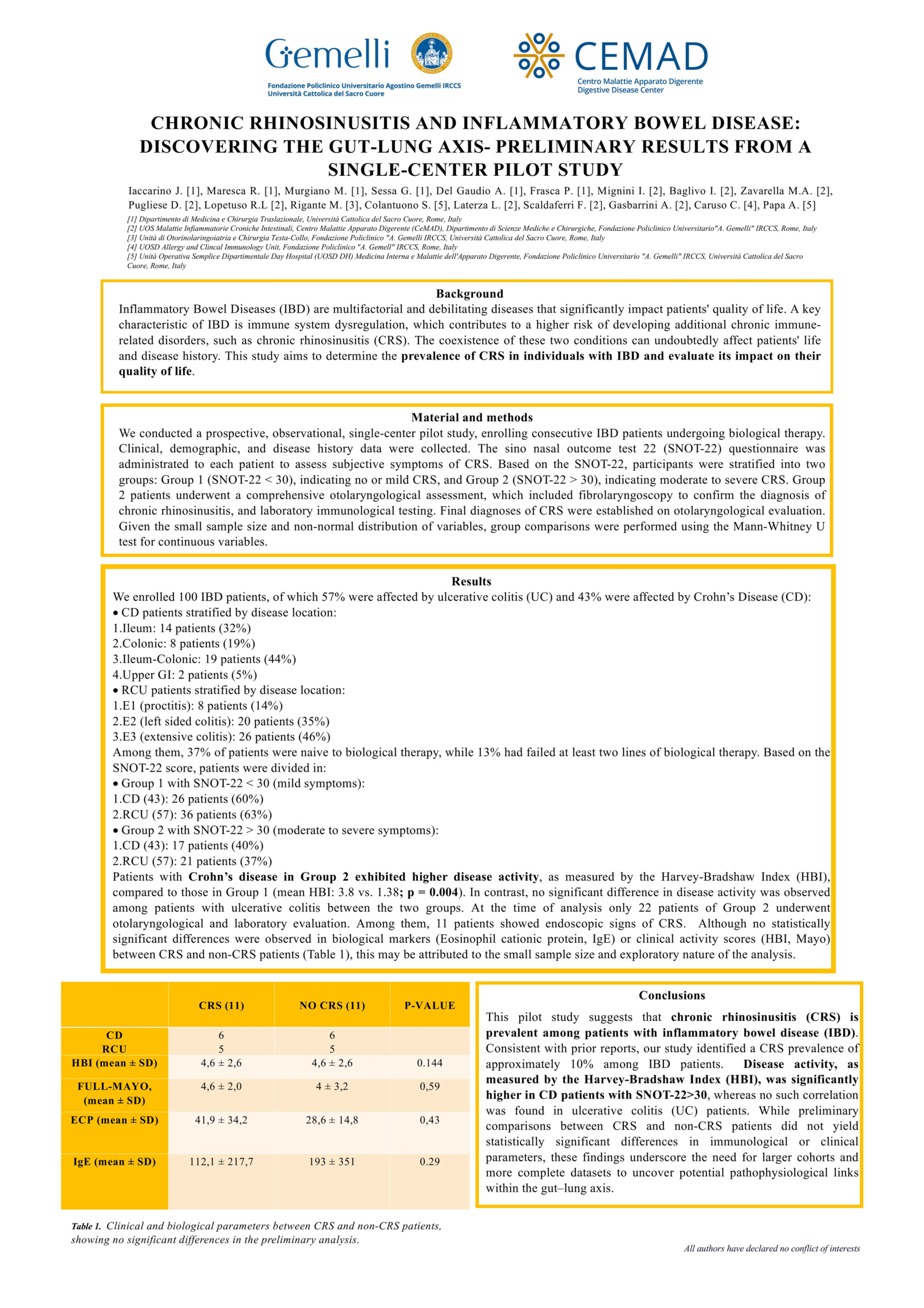 Chronic Rhinosinusitis And Inflammatory Bowel Disease Discovering The Gut-Lung Axis- Preliminary Results From A Single-Center Pilot Study