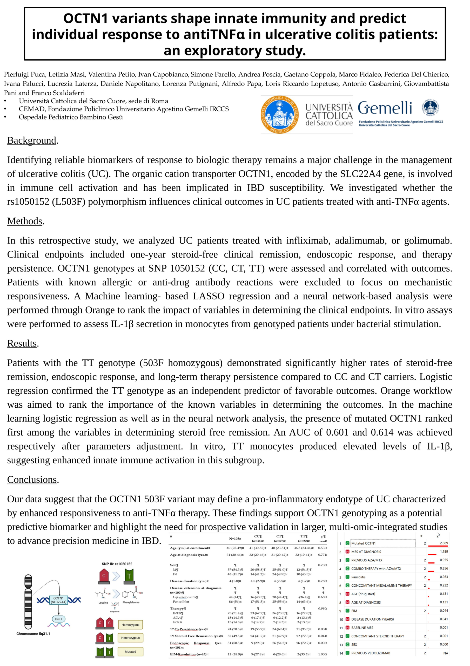 OCTN1 variants shape innate immunity and predict individual response to antiTNFα in ulcerative colitis patients an exploratory study